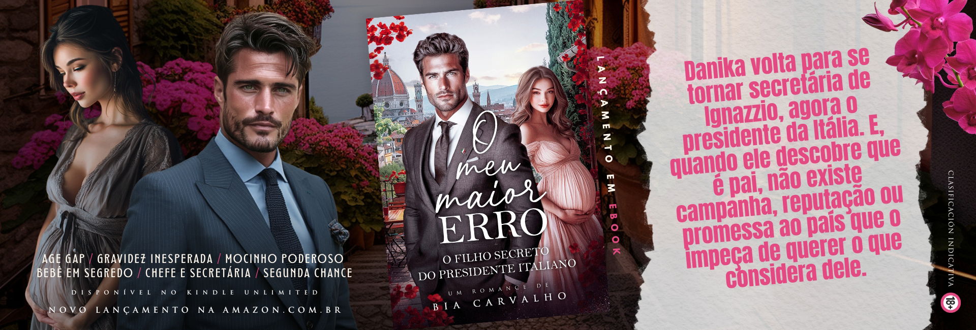 Ignazzio Marino está a um passo de se tornar o homem mais poderoso da Itália. Implacável, controlador e viciado em vencer, ele construiu a própria imagem como quem ergue um império: sem espaço para fraquezas e muito menos para amor. Até Danika Fiorelli atravessar seu caminho. Quatorze anos mais jovem, doce e batalhadora, Danika vive entre contas, responsabilidades e um sonho que ninguém leva a sério: ser pintora. Ela não tem sobrenome influente, precisa trabalhar como professora para ajudar a família. E deveria ser invisível para alguém como Ignazzio. Mas uma tempestade muda tudo. Presos em um hotel de beira de estrada, uma única noite foge do controle… e o que nasce ali não é apenas desejo. É algo mais perigoso: sentimento. Um erro que ele não pode se dar ao luxo de cometer. Os dois se apaixonam, no entanto, mesmo indo contra todas as possibilidades. Até que um acidente muda tudo. Uma tragédia o arrasta para uma tristeza profunda, que o faz rejeitar Danika, mesmo que isso o destrua. Ele só não imagina que deixou para trás também um segredo que mudaria sua vida para sempre. Danika vai embora, sem que ele saiba que está grávida. Algum tempo depois, precisando de dinheiro, Danika volta para se tornar secretária de Ignazzio, agora o presidente da Itália. E, quando ele descobre que é pai, não existe campanha, reputação ou promessa ao país que o impeça de querer o que considera dele. Mas Danika não é mais inocente. E, desta vez, ele vai ter que lutar. Porque reconquistar uma mulher que ele rejeitou… pode ser a coisa mais difícil que Ignazzio Marino terá que fazer.