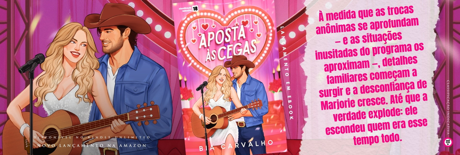 Ele odeia os holofotes. Ela precisa limpar sua imagem. E um reality show de namoro às cegas é o pior lugar possível para um reencontro. Depois de um escândalo colocar sua carreira em risco, a popstar Marjorie Averly aceita participar de um reality de namoro às cegas. As regras são simples e inegociáveis: não pode ver o rosto dos participantes, eles usarão apenas apelidos e não irá ouvir as vozes reais. Ela só não imagina que um dos participantes é Derek Montoya, o cowboy do interior que ela abandonou quando sua vida virou de cabeça para baixo. Agora, ele é um homem feito: milionário, dono de um império de laticínios, absurdamente ranzinza... e impossível de ignorar. Derek não tem a menor paciência para o mundo da fama, mas entrou no programa por um único motivo: reconquistar a mulher que ama desde garoto. À medida que as trocas anônimas se aprofundam — e as situações inusitadas do programa os aproximam —, detalhes familiares começam a surgir e a desconfiança de Marjorie cresce. Até que a verdade explode: ele escondeu quem era esse tempo todo. Com sua reputação por um fio e as câmeras rodando, Marjorie precisa escolher entre o amor que nunca esqueceu ou a segurança de manter o seu passado trancado para sempre.